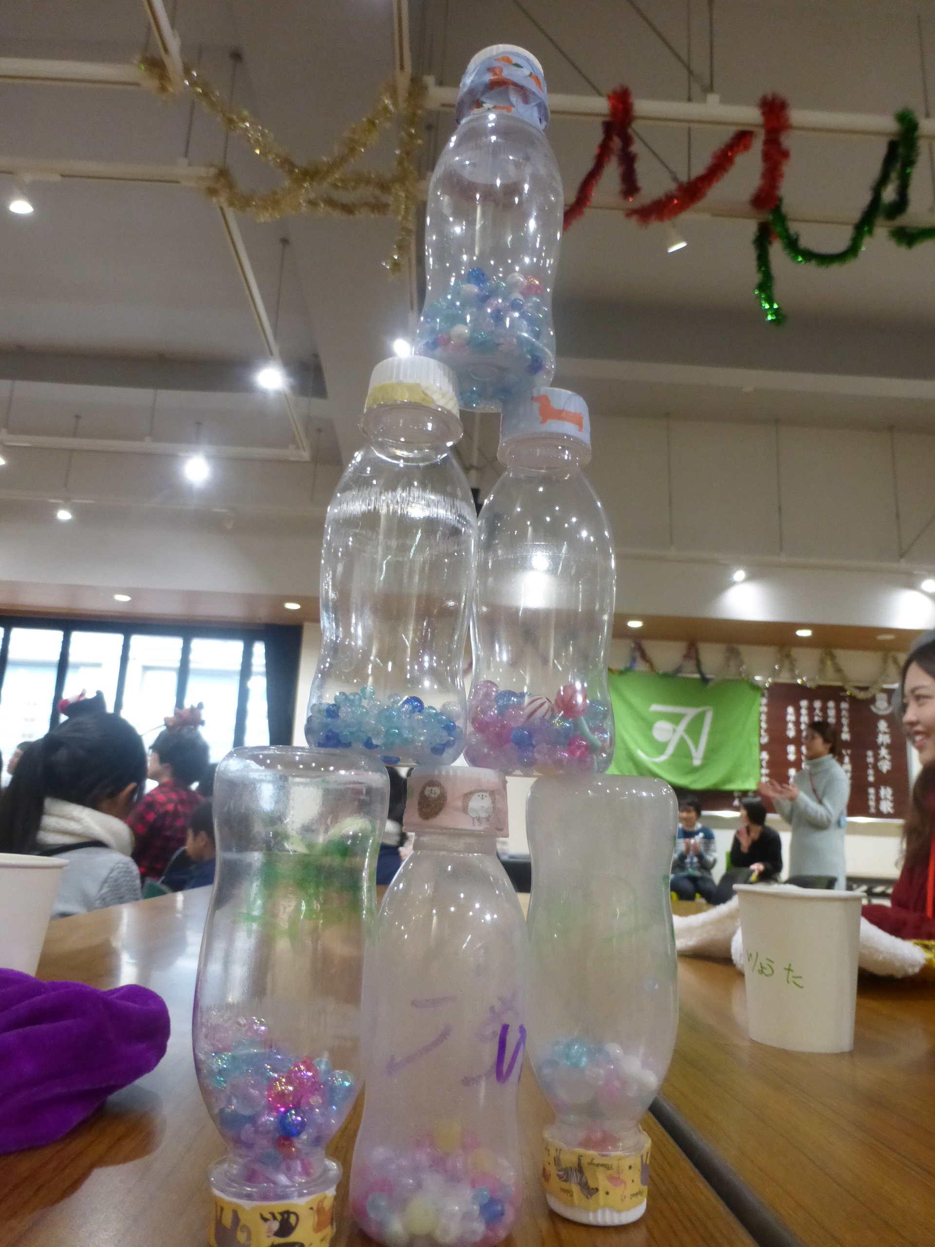 ②ボトルにビーズを入れます。こぼさないようにそーっと。
